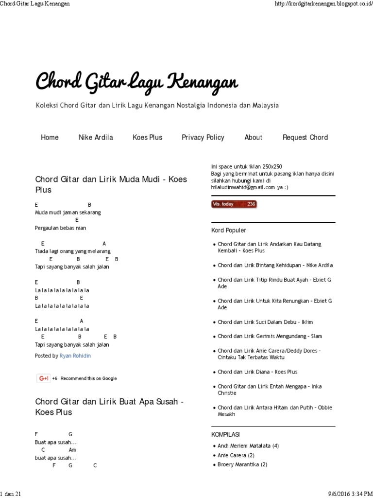 Chord kunci gitar sayur kol (lagu punk batak) punxgoaran chord gitar jantungku berhenti wali chord gitar andaikan kau datang koes plus tujuh chord gitar pilihan pengunjung pada minggu ini 11 februari 2020 Chordtela koes plus andaikan kau datang kembali. Chord gitar andaikan kau datang kembali. Kunci gitar koes plus docx. D g terlalu sedih dikenangkan. Lagu ini dirilis pertama kali oleh group koes plus pada tahun 1970. Jumat, 14 februari 2020 14:07 G terlalu indah dilupakan d g terlalu sedih dikenangkan c bm em setelah aku jauh berjalan d g c d dan kau. 477106 views added to favorites 1799 times. C g setelah aku jauh berjalan. G am terlalu indah dilupakan Lagu ini dicover oleh ruth sahanaya (2004) dan noah (2016). Andaikan kau datang chords by koes plus.